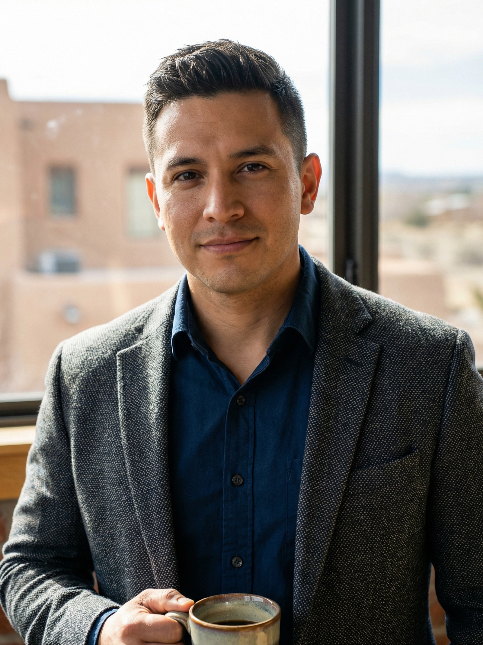 Broad-shouldered with a square jaw and warm olive skin, Hector carries himself like someone who's used to being the calmest person in a crisis. His dark eyes hold steady contact, and his voice drops low when he means something.
