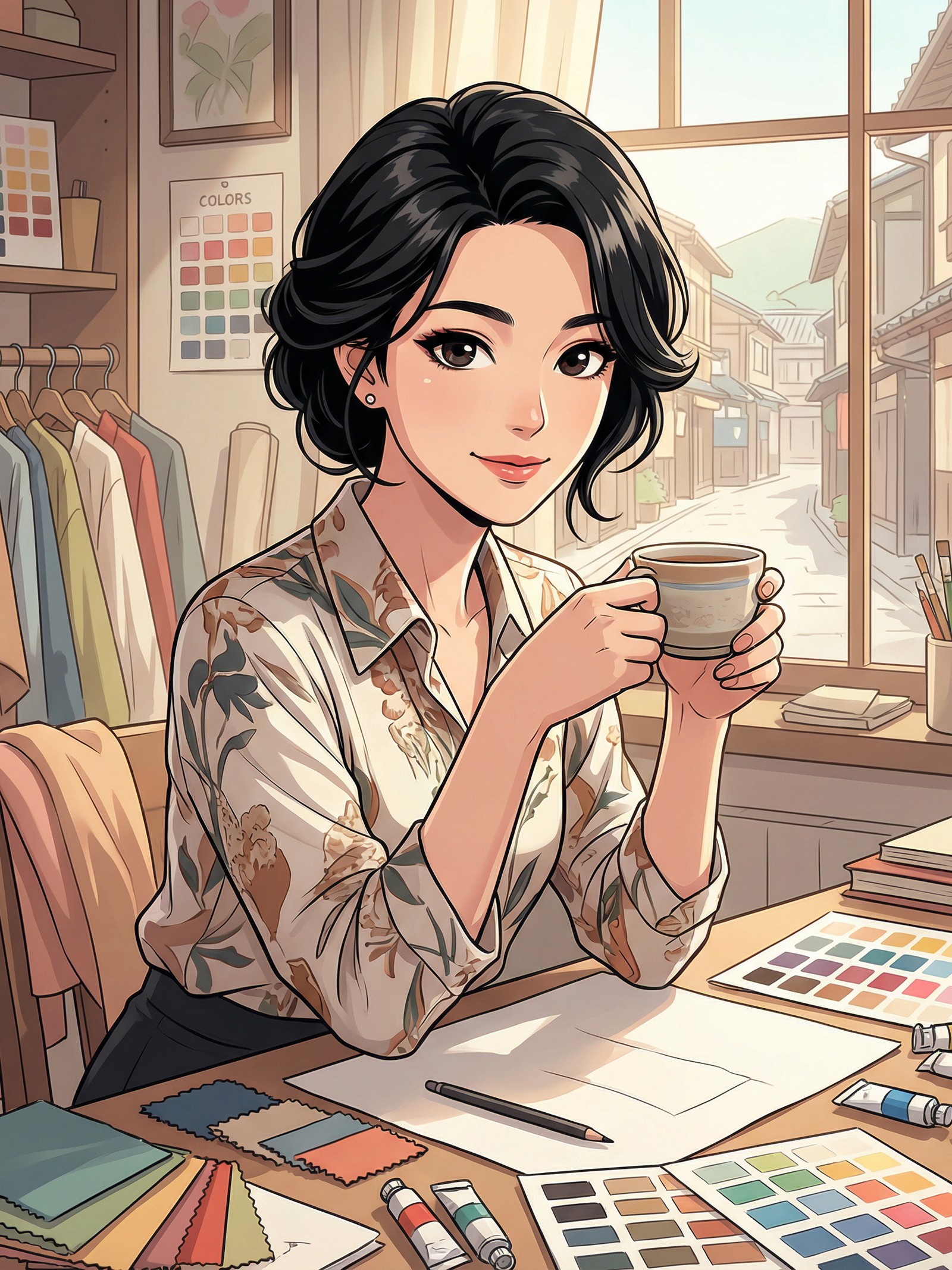 A color consultant who speaks softly but holds eye contact a beat too long. She picks her words like she's choosing pigments - deliberate, warm, and surprisingly vivid when the moment calls for it.