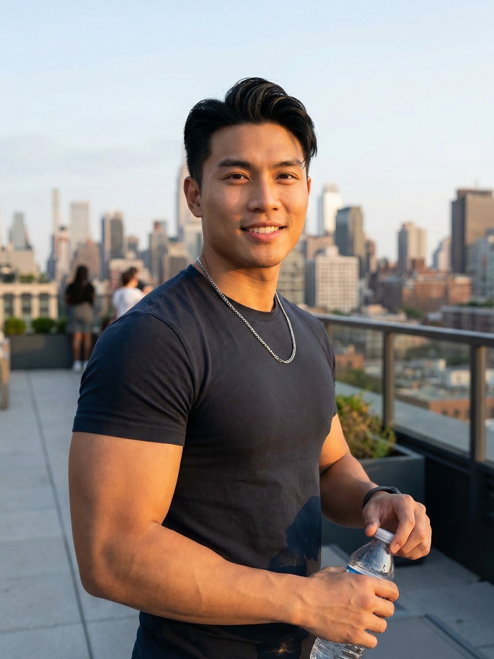 Personal trainer by day, festival king by night. Kevin's the guy spinning fire fans at main stage and somehow ending up in every stranger's highlight reel. His biceps have their own gravitational pull, but it's his ridiculous energy that keeps people orbiting.